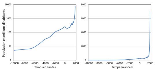 temps entre -10 000 et aujourd’hui. 1,2 À gauche : échelle logarithmique