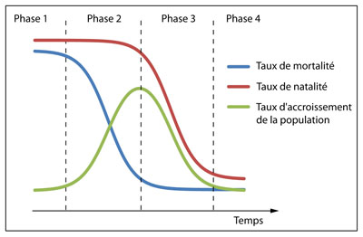 la phase 4 où les taux de natalité et de mortalité sont faibles. Si les