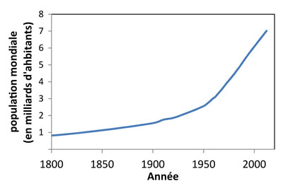 Évolution de la démographie entre 1800 (début de la Révolution industrielle) et aujourd’hui.3