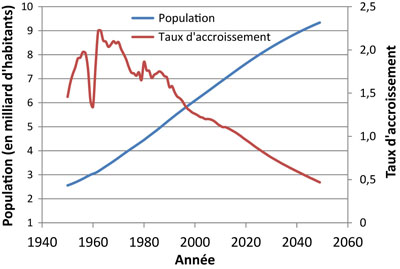 de la démographie mondiale (en millions d’habitants) en fonction du